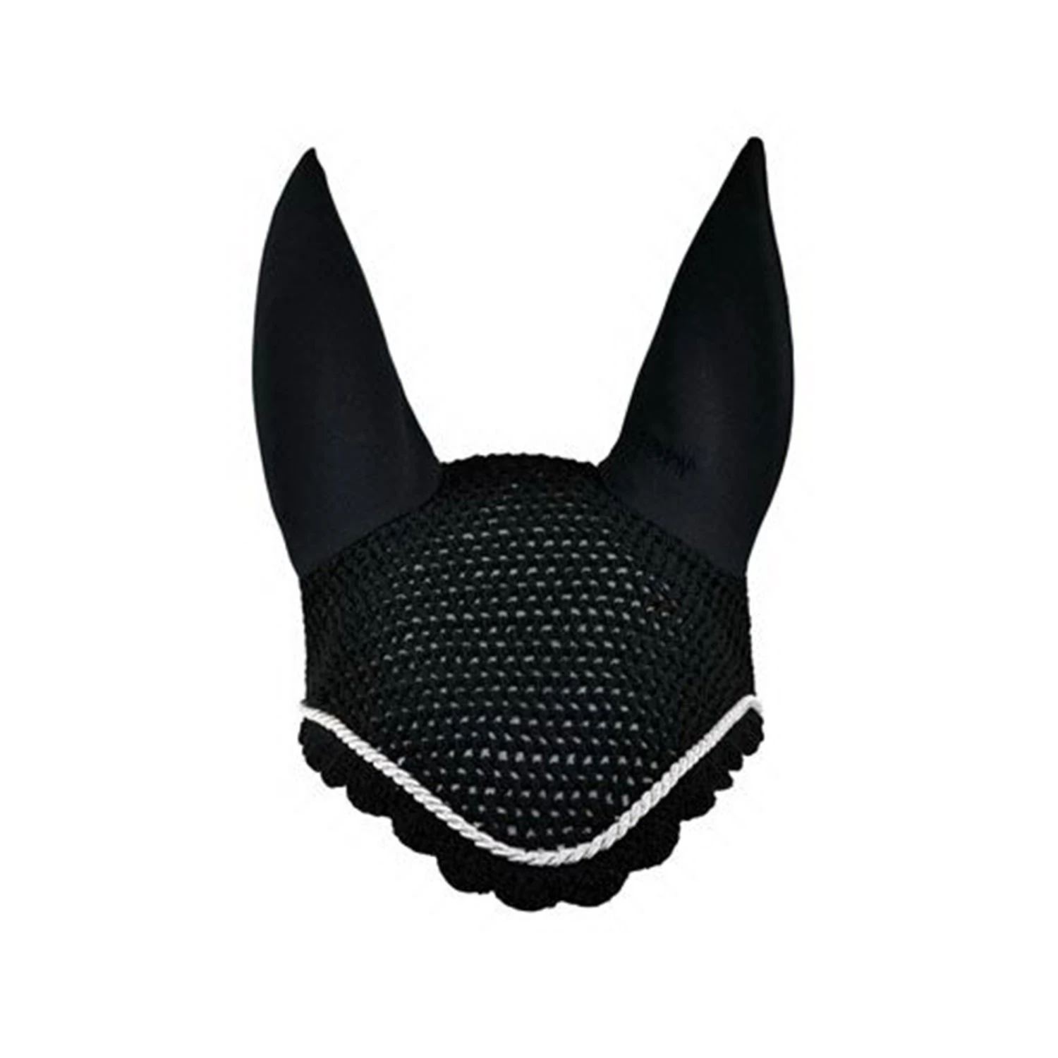 Der gehäkelte Fliegenkopfschutz mit elastischen Ohren bietet nicht nur im Sommer Schutz vor Lästlingen, sondern bildet in Kombination mit der umlaufenden Kordel eine harmonische Einheit zum Kombinieren.