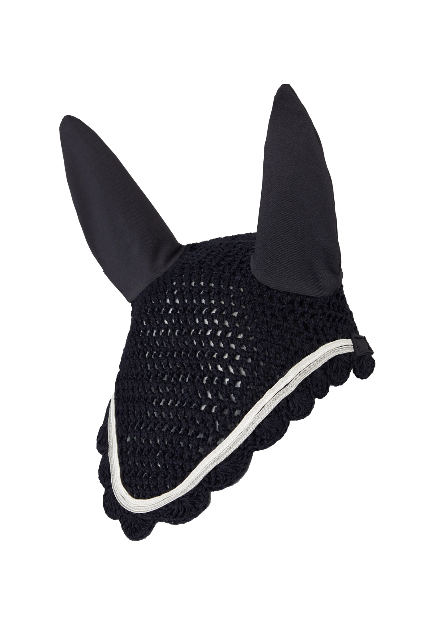 Die Horze Geneva Fliegenhaube ist aus weichem Material gefertigt und mit elastischen Ohren ausgestattet. Die elegante Borte mit Paspelierung passt zu den Ohren. Kombiniere diese Fliegenhaube mit unserer Horze Geneva Schabracke für einen kompletten Look!