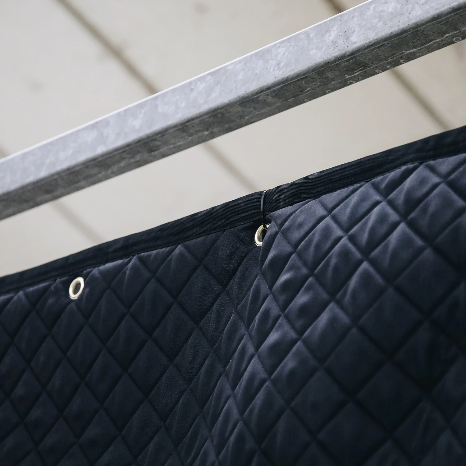 Der Kentucky Horsewear Stallvorhang ermöglicht dem Pferd die wohlverdiente Ruhe auf dem Turnier oder auch Zuhause. Der Stallvorhang hat 5 goldene Ringe zur Befestigung an der Box. Zudem ist der Stallvorhang mit 5 Snaphaken ausgestattet. An diesen praktischen Haken können Trensen, Schabrackenhalter usw. aufgehängt werden. Diese Haken befinden sich unter dem kleinen vorderen Vorhang. Durch die Diamantensteppung, die braune Biese aus Kunstleder und dem dezenten Kentucky Logo wirkt das Design sehr schick. Der Stallvorhang kann mit dem Kentucky Horsewear Kopfschutz und Türvorhang kombiniert werden. Es ist aus einem 600Denier High Tenacity Polyester und maschinenwaschbar bei 30°, kein Trockner Verfügbar. Einheitsgröße.